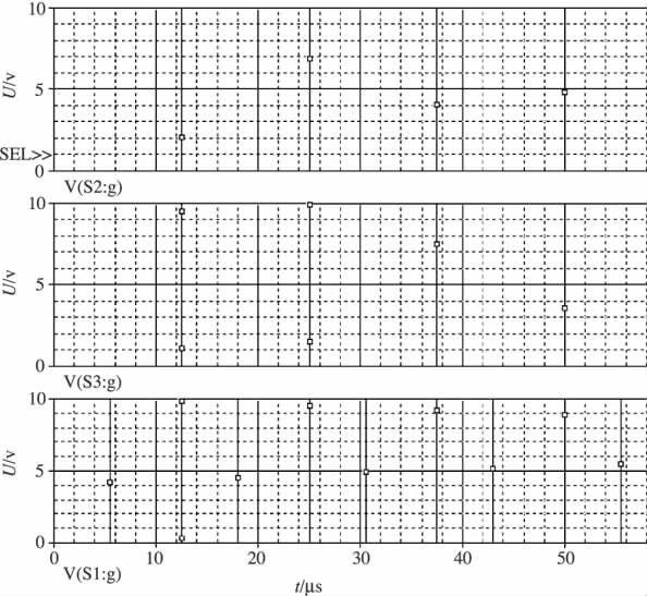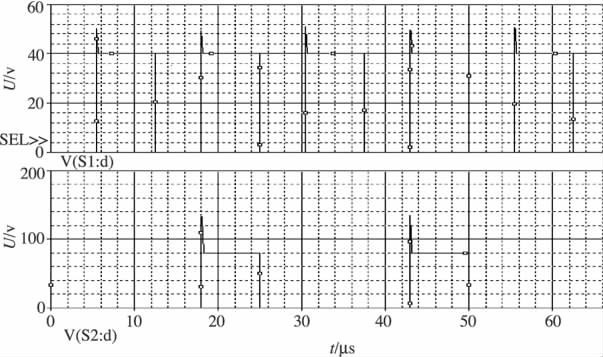 為了驗證上述分析,下面應用PSPICE 電路仿真軟件對這種推挽式Boost DC /DC 變換電路進行建模仿真,觀察其仿真波形。