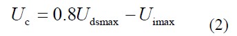 輸入電壓最大值為 Uimax ,開關管的最大耐壓值為 U dsmax,考慮80%的降額使用系數,則電容 C c兩端電壓Uc 的大小可由式(1)確定。