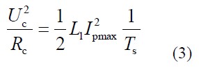 為保證電容 Cc 兩端電壓紋波足夠小,需RcCc >>Ts ,取10 倍關系,則電容 C c的大小由式(3)確定。
