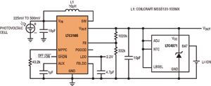 另一個(gè)關(guān)鍵考慮因素是能量存儲器件的充電速率。例如,最大充電電流為300μA的鋰離子幣形電池需要在電池和 LTC3105輸出之間有一個(gè)大的電阻器,以防止過流情況。這可能限制能收集的能量,從而減少可用于應(yīng)用的能量。