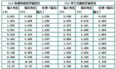 (a)檢測電路的傳輸特性(b)單個光耦的傳輸特性