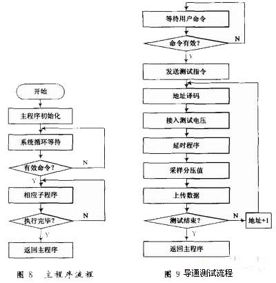 絕緣測試部分的工作流程和導通測試類似,但是需要特別注意的是在執行絕緣測試命令時,系統首先會對測試區間內的點進行一次導通測試,并記錄導通的通道號,這樣在工控機向單片機發送地址指令時會自動跳過這些通道,從而保證操作人員和被測產品的安全,防止高壓短路可能引起的災難性后果。