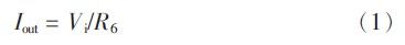 電流控制電路采用數模轉換器芯片TLV5613加上V/I轉換電路構成穩定電流源,可通過單片機程序控制輸出所需要的電流給測量回路供電以滿足系統測試對電流的要求。在極性測試環節可給出合適的電流值,便于系統測量二極管電壓值并據此判斷二極管的好壞及極性;在特性測試環節可根據設定電流值增大或減小回路電流,使其與設定值一致;在伏安特性曲線繪制環節可給出由小到大逐漸增大的電流值便于系統采樣繪圖。