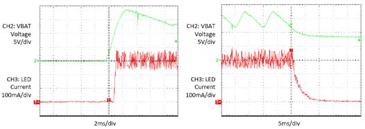 在根據圖1的電路圖配置的電路中,啟動和斷電瞬態如圖4所示。