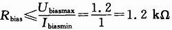 TL431a的陰極電壓Uka在2.5 V~36 V變化時,陰極電流Ika范圍是1~150 mA,當PC817的正向電流If為0時,必須保證Ika至少為1 mA,所以Ibias至少為1 mA,此時PC817的正向壓降Uf即Ubias小于1.2 V,所以Rbias的范圍: