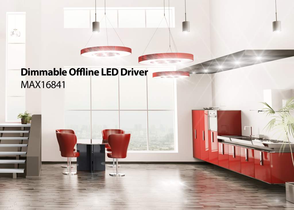 Maxim Integrated Products, Inc 推出離線式LED驅動器MAX16841,采用前沿(三端雙向可控硅)和后沿(晶體管)調光器實現從最大光強到零光強的無閃爍調光。固定頻率控制優化了工作在低壓和高壓交流電網的效率。MAX16841采用90VAC至265VAC輸入范圍,是適用于日本、中國、美國和歐洲調光器的通用解決方案。該驅動器允許直接替代白熾燈和鹵素燈,從而避免了預安裝調光器時的兼容性問題。MAX16841不需要電解電容即可工作,從而延長了LED燈的壽命。淘汰這些電容還可節省空間和費用。該LED驅動器非常適合工業、商業和住宅照明應用中可調光LED燈和通用LED照明燈的升級換代。