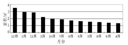 圖8 各月太陽能電池板對應面積排列柱形圖