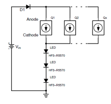 圖12. 多個恒流二極管并聯(lián)以增大電流