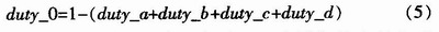 以虛擬整流器、逆變器均工作在第一扇區為例,相量合成的固定空間電流、電壓相量分別是I6、I1和U6、U1,兩個空間相量的綜合調制采用相互嵌套的辦法來實現。整個輸入相電流和輸出相電壓相量合成共有I6-U6、I6-U1、I1-U6、I1-U1、I0-U0 5種組合。每一相量組合的作用時間用占空比duty來表示。等式(1~5)反映了占空比的計算公式。占空比可以通過表1來分配給相應的開關組合。