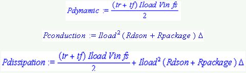 其中:tr和tf =上升和下降時間;Vin =輸入電壓;ILoad =負載電流;Fs =開關頻率;RDS(ON) = MOSFET導通電阻;ΔPWM = 占空周期;Rpackage =封裝阻抗;