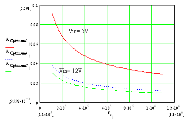 如下圖3所示,是在不同輸入電壓的情況下最優化裸片面積和開關頻率之間的關系。顯然,在動態損耗和傳導損耗之間我們需要采取不同的混合,并且在高開關頻率下動態或開關損耗其支配作用,因此,迫使把裸片面積做得非常小。