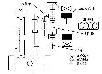 汽車動力傳動系統采用傳統的內燃機和電動機作為動力能源,通過混合使用熱能和電能兩套系統開動汽車。在低速小功率運行時可以關閉發動機,采用電動機驅動;而高速行駛時用內燃機驅動;通過發動機和電動機的協同工作模式,將車輛在制動時產生的能量轉化為電能,并積蓄起來成為新的驅動力量.從而在不同工況下都能達到高效率。一般上有串聯式、并聯式、混聯式和復合式4種布置形式。
