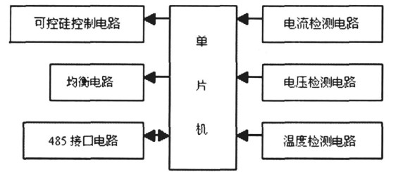 充電機本體實際上是一個實時監(jiān)測和控制系統(tǒng),結構框圖如圖1所示,它按照接收到的上位機命令完成對蓄電池充電過程的監(jiān)控,并實時地將檢測到的充電參數(shù)返回給上位機,這些參數(shù)包括蓄電池端電壓、充電電流和電池溫度等。圖2的主充電路實現(xiàn)充電電流、電壓的控制,是充電機的關鍵環(huán)節(jié)。圖3的均衡電路解決由于電池制造工藝的不同等原因引起的電量不均衡; 485接口電路實現(xiàn)充電機本體與上位機的通信;電流、電壓、溫度檢測電路實時地檢測充電的電流、電壓和電池溫度。
