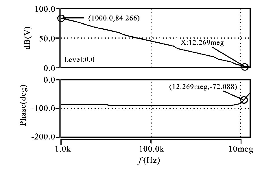 圖5 運(yùn)放頻率特性仿真
