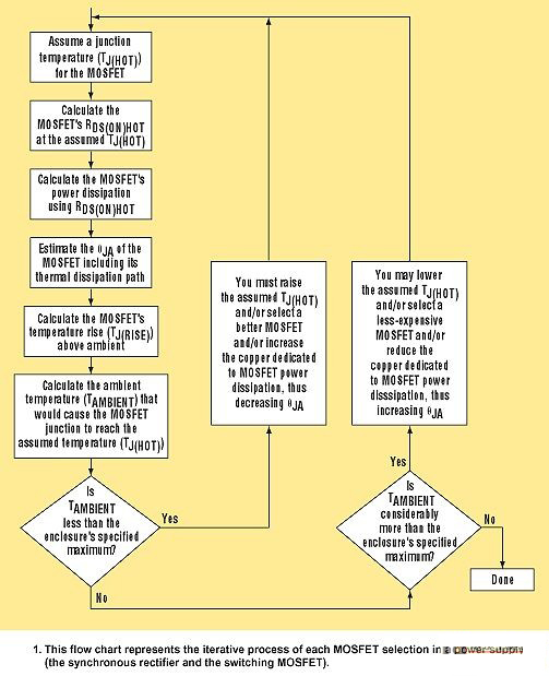 這一過程從首先假設各MOSFET的結溫開始,同樣的過程對于每個MOSFET單獨進行。MOSFET的功率耗散和允許的環境溫度都要計算。