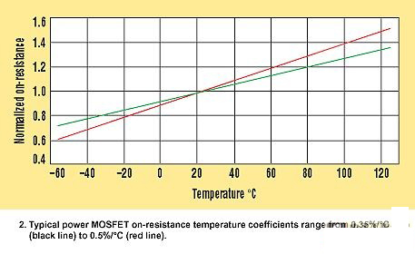對于開關MOSFET和同步整流器兩者,都是選擇作為此迭代過程開始點的最大允許裸片結溫(TJ(HOT))。大多數MOSFET數據參數頁只給出25°C的最大RDS(ON),,但近來有一些也提供了125°C的最大值。MOSFETRDS(ON)隨著溫度而提高,通常溫度系數在0.35%/°C至0.5%/°C的范圍內(圖2)。如果對此有所懷疑,可以采用更悲觀的溫度系數和MOSFET在25°C規格參數(或125°C的規格參數,如果有提供的話)計算所選擇的TJ(HOT)處的最大RDS(ON):RDS(ON) HOT =RDS(ON) SPEC ×[1+0.005×(TJ(HOT)?TSPEC)]