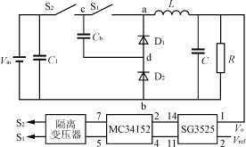 為提高電路的效率及功率器件工作的可靠性,一般需要將控制電路的輸出信號加以功率放大。本文采用MC34152加隔離變壓器驅(qū)動的方法來設計驅(qū)動電路。