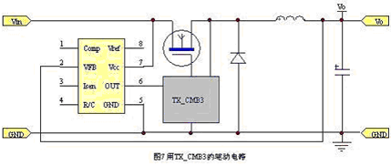 圖7示出的是采用TX_CMB3型驅動模塊的斬波電路,該驅動組件是北京落木源公司(www.pwrdriver.com)新開發出的單管隔離驅動器。該款驅動器使用變壓器隔離,采用分時技術,在輸入信號的上升和下降沿傳遞PWM的信號,在平頂階段傳遞能量,因而能夠輸出陡峭的驅動脈沖。這種驅動方法的優點是使用方便(在MOSFET功率不大時,只要如圖7連接就可以了),驅動脈沖質量好,工作頻率高,體積較小,輸入電壓最高可達1000V,價格也比較便宜。缺點是工作頻率低時要求的變壓器體積比較大,同時成本稍高些,但考慮到簡化了設計、并降低了裝配成本,總成本可能還要低些。
