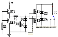 關互補電路實際上是繼電器的一個旁通電子開關,采用兩只IGBT、兩只二極管構成的交流通路,是互補式交流穩壓器的主要技術點,電路如圖3: