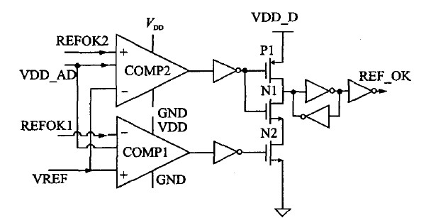 此外,本設計中還設置了一個REF-OK模塊來判斷上電后電源系統是否已進入正常工作狀態。