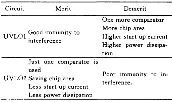 欠壓鎖定電路又稱UVLO,見圖2.圖中 VDD為芯片外部供電電源,設計值為12 V.欠壓鎖定電路的窗口設置為7~9.5 V,即上電后電壓上升到大于9.5V 時芯片開始正常工作,而當供電電壓小于7 V時芯片停止工作。考慮到欠壓鎖定電路在電源控制芯片中的重要性,設計給出了兩種實現方案,并對兩種控制策略的性能進行了分析與比較。