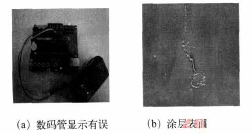 發現涂層有明顯的裂痕,數碼管的第二個數字“2”顯示有問題,如圖3 所示。