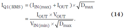 其中,QGD 為柵極到漏極電荷,QG 為 FET 的總柵極電荷,IGate 為最大驅動電流,而 VGate 為控制器的最大柵極驅動。Q1 的 RMS 電流為: