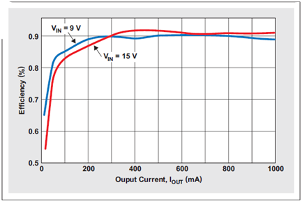 圖 6 VIN=9V 且IOUT=1A 時的運行情況