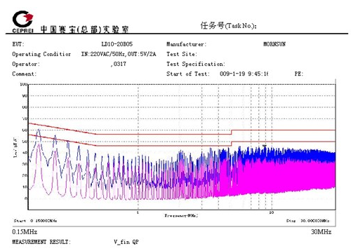 5. 具有較低的EMI性能。EN55011有l(wèi)evel B,level A兩個等級,level B比level A嚴(yán)苛得多。圖2、圖3是LD10產(chǎn)品的EMI測試數(shù)據(jù),該數(shù)據(jù)由國家電子五所專業(yè)測試。測試結(jié)果可以看出,該系列電源具有較低的電磁輻射性能,達(dá)到EN55011,level B的要求。