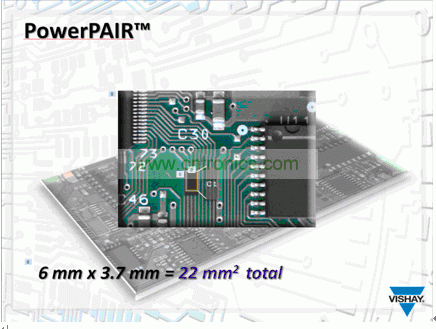 PowerPAIR就是這樣的一種封裝類型,這種封裝的外形尺寸比單片功率6 x 5封裝 (PowerPAK SO-8)小,最大電流可以達到15A。在筆記本電腦中,一般象這么大的負載電流都會采用兩個功率6 x 5封裝,算上導(dǎo)線和打標簽的面積,以及兩個器件的位置擺放,占用的面積超過60mm2。這種雙芯片功率封裝的尺寸是6.0mm x 3.7mm ,在電路板上占用的面積為22mm2。能把電路板空間減少63%對電源工程師是很有幫助的,因為他們給電源電路設(shè)計的空間是越來越少了。用傳統(tǒng)的SO-8雙芯片功率型封裝,是沒法取得這么大的好處的。