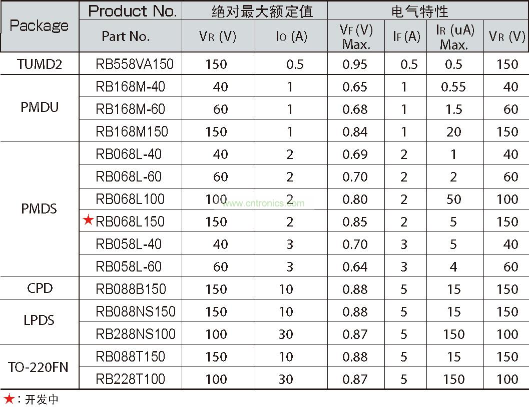 高溫環境下使用的車載、電源設備的電路中,由于擔心熱失控,因此普遍采用整流二極管和快速恢復二極管(FRD)。但是由于整流二極管和FRD的VF值較高,因此很難實現EV和HEV所要求的更低功耗。在這種背景下,VF值較低的肖特基勢壘二極管(SBD)在高溫環境下亦可安全使用的產品的開發需求逐年高漲。