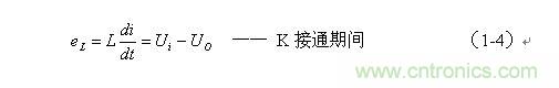 ;在K關(guān)斷期間,流過儲能電感L的電流上升率為: