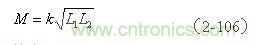 【說明】互感M有正負(fù),圖2-41-a和圖2-41-c的接法互感M為正,圖2-41-b和圖2-41-d的接法互感M為負(fù)。兩個線圈之間的互感M為: