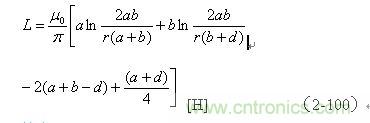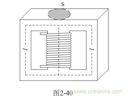 【說明】上式是用來計(jì)算變壓器線圈電感的計(jì)算公式。由于變壓器鐵芯的磁回路基本是封閉的,變壓器鐵芯的平均導(dǎo)磁率相對來說比較大。鐵芯的導(dǎo)磁率一般在產(chǎn)品技術(shù)手冊中都會給出,但由于大多數(shù)開關(guān)變壓器的鐵芯都留有氣隙,留有氣隙的磁回路會出現(xiàn)磁場強(qiáng)度以及磁感應(yīng)強(qiáng)度分布不均勻,因此,(2-103)式中的導(dǎo)磁率只能使用平均導(dǎo)磁率,技術(shù)手冊中的數(shù)據(jù)不能直接使用。