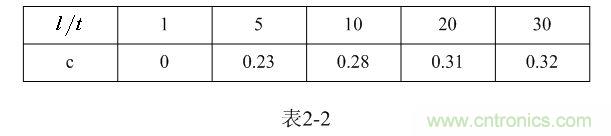 【說明】上式是用來計(jì)算多層線圈繞組、截面為圓形的空心線圈的電感計(jì)算公式。長岡系數(shù)k可查閱表2-1,系數(shù)c可查閱表2-2。當(dāng)線圈內(nèi)部有鐵芯時(shí),有鐵芯線圈的電感是空心線圈電感的