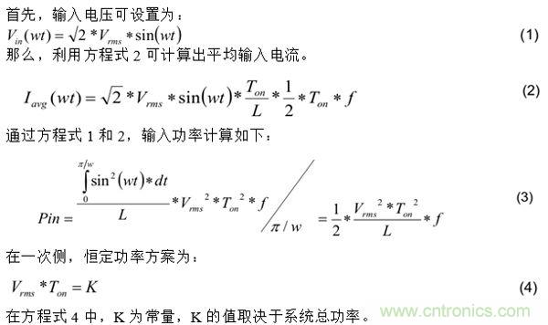 為了滿足一次側恒定功率控制的要求( Vrms *Ton= K),選擇B=0。同時,可根據輸入功率選擇A和C。