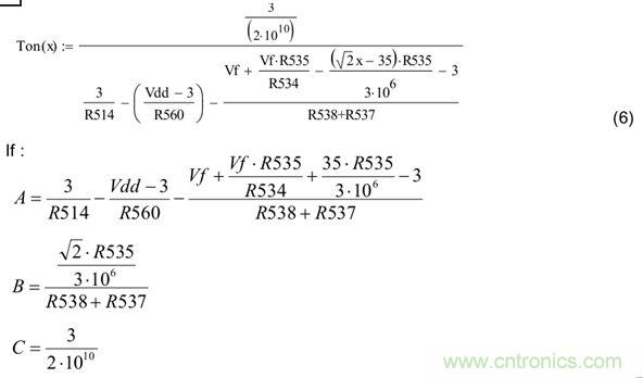 假設Vin_rms= x,Ton和Vin_rms之間的關系可計算如下: