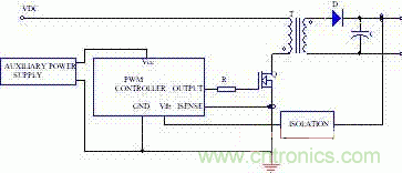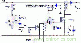 圖4:一種自激式反激式高頻變換器構(gòu)成的輔助電源