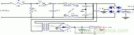 圖2:低頻變壓器構(gòu)成的輔助電源