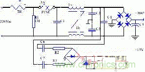 第一種方法: 傳統(tǒng)的線性電源作為輔助電源。它是用普通的矽鋼片低頻變壓器降壓后,又經(jīng)過四只二極管全波整流,經(jīng)C5、C6平滑濾波后加到三端穩(wěn)壓器7815輸入端。電路見圖2: