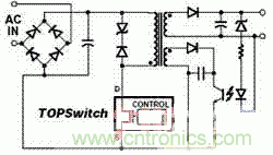 圖 5 Topswitch在單端反激式單片開關(guān)電源中的應(yīng)用