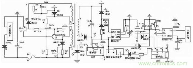 穩壓電路由穩壓管D0、三極管Q2 等元件組成。當負載減輕或太陽能組件輸出電壓升高時, A 點電壓上升。當該電壓大于511V 時, D0 擊穿, Q2 因b2e 結正向偏置而迅速導通,使Q1 提前截止,從而使輸出電壓趨于下降;反之,則控制過程相反,從而使變壓器T1 副邊輸出電壓基本穩定。當負載過重時,Q1的c2e 電流增大, R4 上的壓降也隨之增大。當該電壓大于017V 時, Q2 導通, Q1 截止,達到過流保護的目的。為避免截止期間變壓器T1 的122 繞組感應出的尖峰脈沖擊穿開關管Q1 ,并聯了尖峰脈沖吸收電路。
