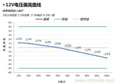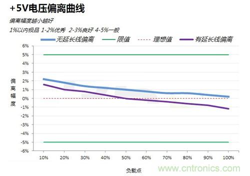 這是一款入門級電源的整體表現(xiàn),效能就是通牌水準,而電源電壓偏離也是處于一個比較好的水平,下面我們接上延長線去測試。