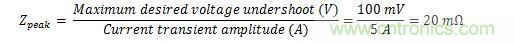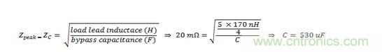 根據下面的表達式,確定負載導線網絡的指定峰值阻抗和旁路電容: