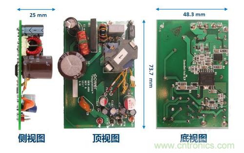 由于光耦的性能會隨著時間下降,所以采用InnoSwitch-EP IC而無需光耦的電源可靠性會得到加強,同時電路所需的元器件數量也大大減少。以一個20W的電路設計為例,整個方案不到50個元器件,且不需要散熱片,這使得最終產品的外形尺寸也可以更為小巧。(見圖5)