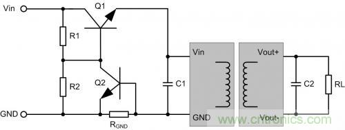 通過檢測RGND的電流,增大Q2的導(dǎo)通電壓后,把Q1關(guān)斷,停止供電,達(dá)到過流或短路保護(hù)的目的。
