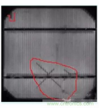 垂直于主柵線的裂紋(第5類)幾乎不影響細柵線,因此造成電池片失效的面積幾乎為零。