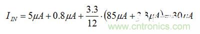 我計算出的30μA電流值有點不同,不過對于粗略估算來說,這個值已經十分接近了。