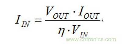 你還可以使用效率曲線來計算DC/DC轉換器的輸入電流,不過這個電流值不是無負載情況下的電流值。理論上,無負載時的效率為零,所以,你必須使用我在本文中介紹的方法估算出無負載電源電流。在任何其它的負載條件下,你可以使用數據表中的效率曲線,連同方程式3來完成計算: