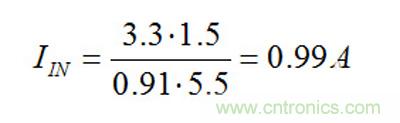 以SIMPLE SWITCHERLM22670 3A降壓穩壓器的數據表為例,負載為1.5A,輸入電壓和輸出電壓分別為5.5V和3.3V情況下的效率大約為91%。這使你的輸入電流大約為:
